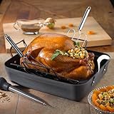 Oven-safe to 450 degrees F; limited lifetime guarantee.Heavy-gauge hard-anodized aluminum development warmths evenly within the oven.Measures sixteen via four with the support of 13 inches (W x H x D).Nonstick surface unencumbers turkey simply and cleans quick.Nonstick roasting pan with rack, bulb baster, injector, and turkey elevateers. What's within the Box Roasting pan, nonstick rack, bulb baster with injector tip, two turkey elevateers Prepare a straight forward roast turkey with this Calphalon Contemporary Nonstick roaster, which supplys comfort and quality that disposable aluminum pans can't match. Constructed of heavy-gauge hard-anodized aluminum, the pan heats evenly and consistently while within the oven, handing over a golden brown bird on the outside that tastes moist and juicy on the inside. The pan's nonstick surface make certains that the turkey will unlock cleanly, making it easy to assemble juices and bits for gravy. The roaster includes a nonstick rack--which lets in heat to circulate underneath the turkey--as neatly as a bulb baster with an injector tip and two stainless-steel turkey lifters. When it is time to take away the chicken from the oven, simply raise the rack out of the roasting pan, then use the raiseers to move the turkey to the serving platter. The pan measures sixteen with the support of four by using thirteen inches (W x H x D) and that is oven-safe to 450 degrees F. It additionally includes a lifetime warranty against defects.. Read more Calphalon Contemporary Nonstick Roaster with Rack, Baster, Injector, and Lifters